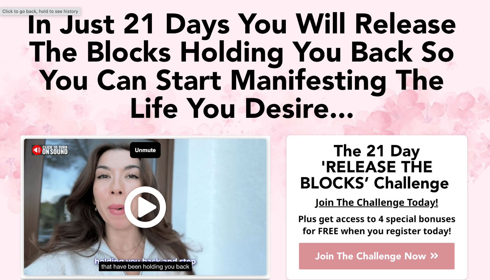 Before pitching her high-ticket program... she offers a 21-Day “Release The Blocks” Challenge for $97.