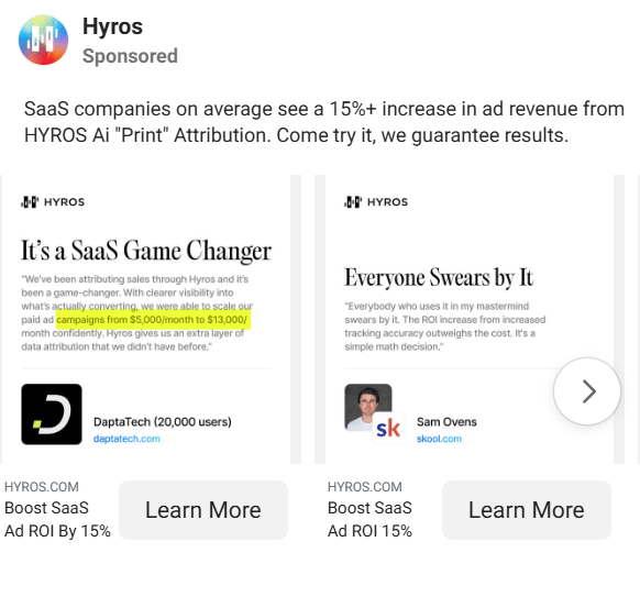 HYROS uses long-form objection stacking to increase demo close rate — not landing page conversion rate.